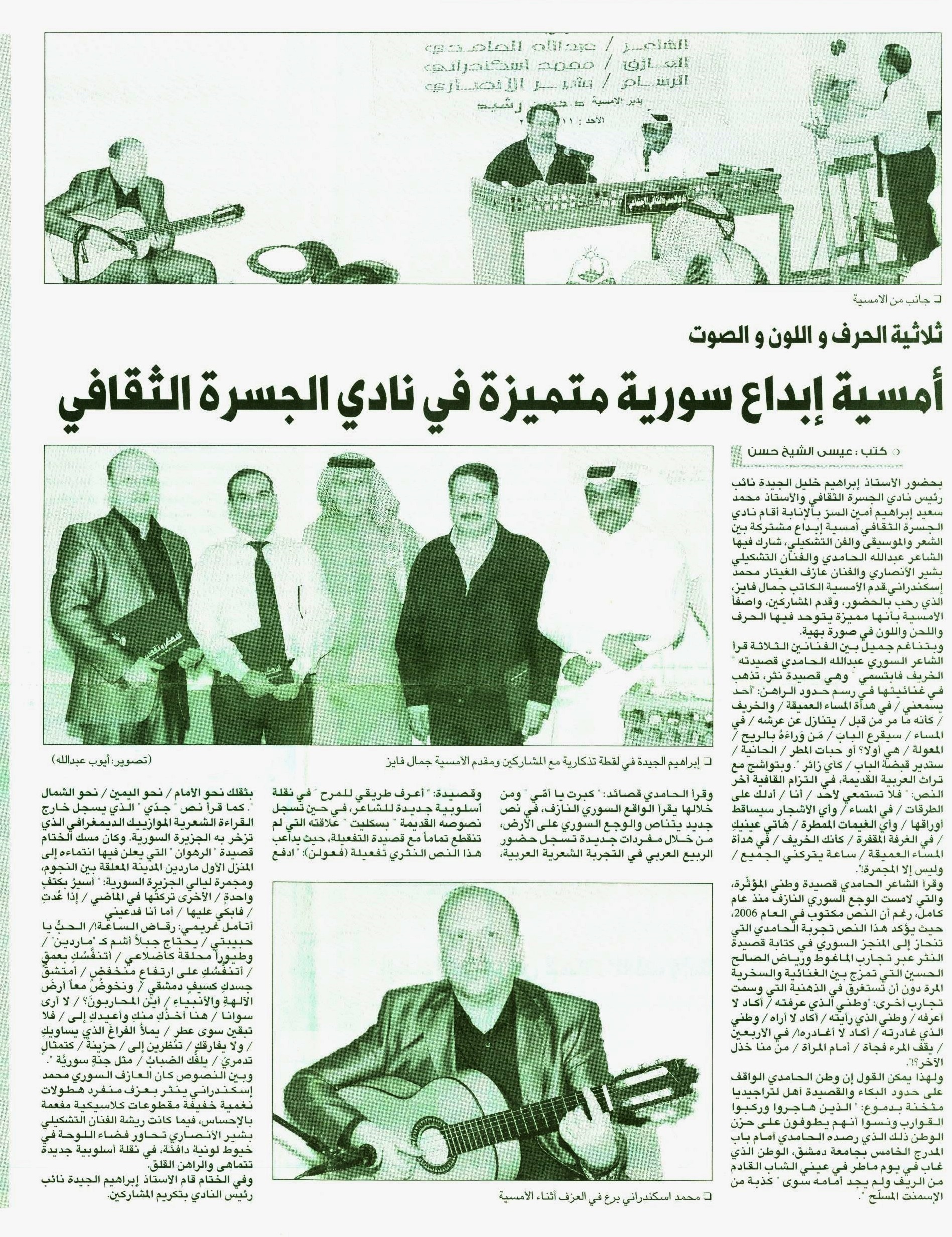 Al Arab newspaper: Coverage of AlexanderRani concert on 2010. Title : IN A MUSICAL EVENT BY THE GUITARIST AlexanderRani. THE GUITAR FUSE THE WEST AND THE EAST.