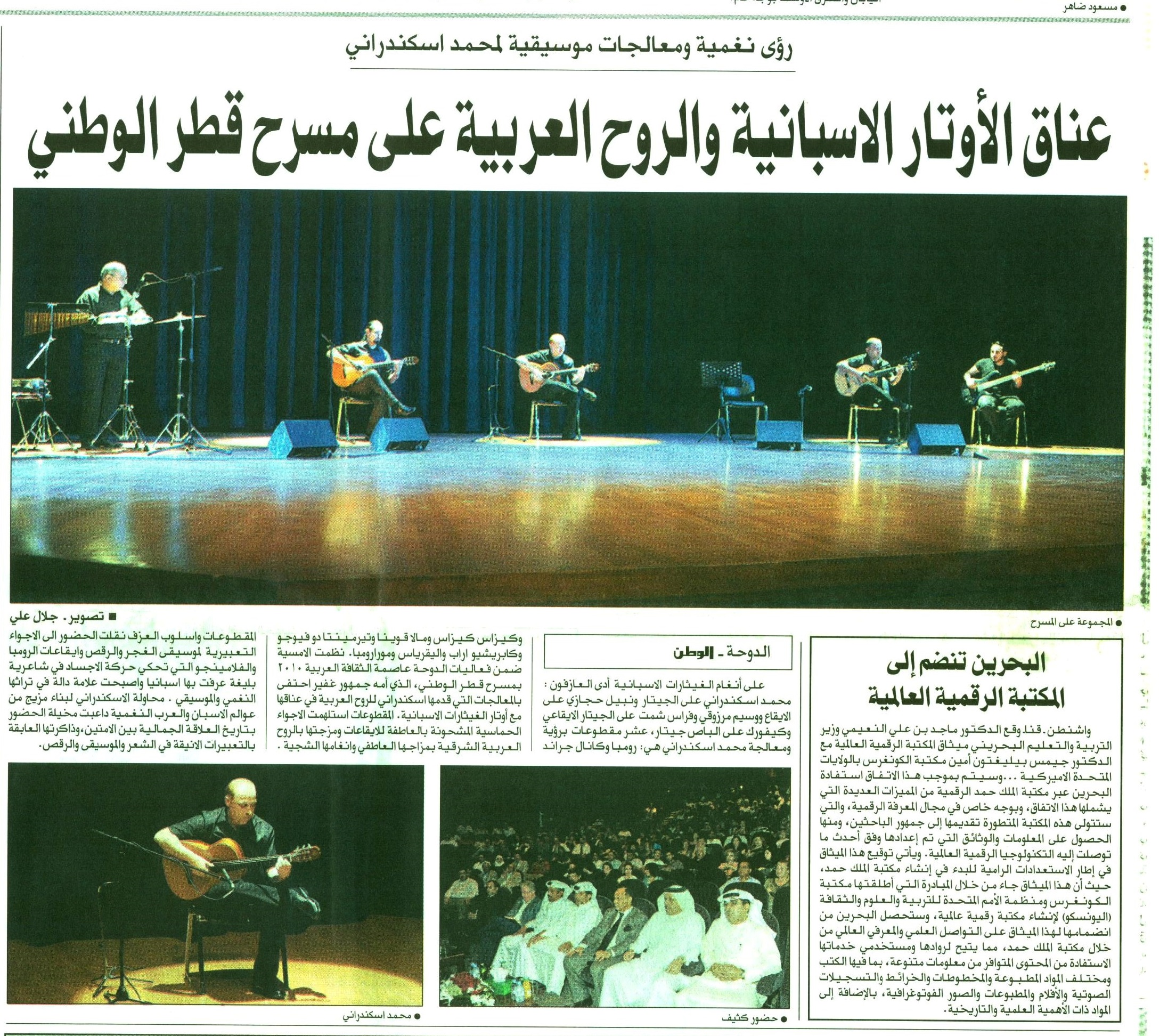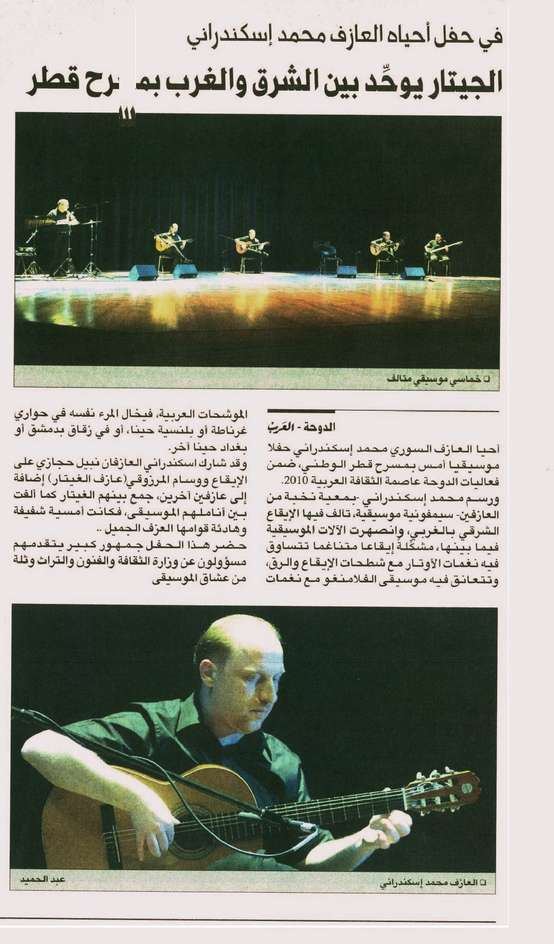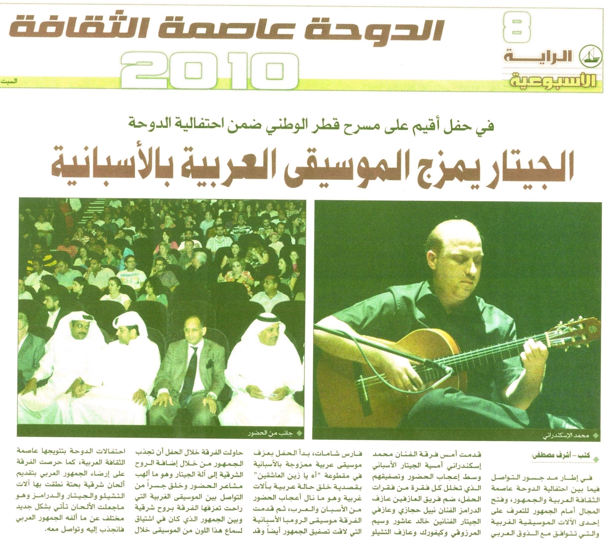 Al Arab newspaper: Coverage of AlexanderRani concert on 2010. Title : IN A MUSICAL EVENT BY THE GUITARIST AlexanderRani. THE GUITAR FUSE THE WEST AND THE EAST.