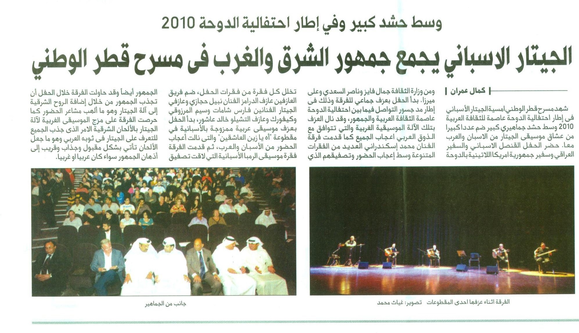 Al Sharqu newspaper: Coverage of one of AlexanderRani concerts under title: In the presence of large audience. Described the interaction of the large audience, and the presence of Important persons like ambassadors and other senior figures from the ministry of culture.
