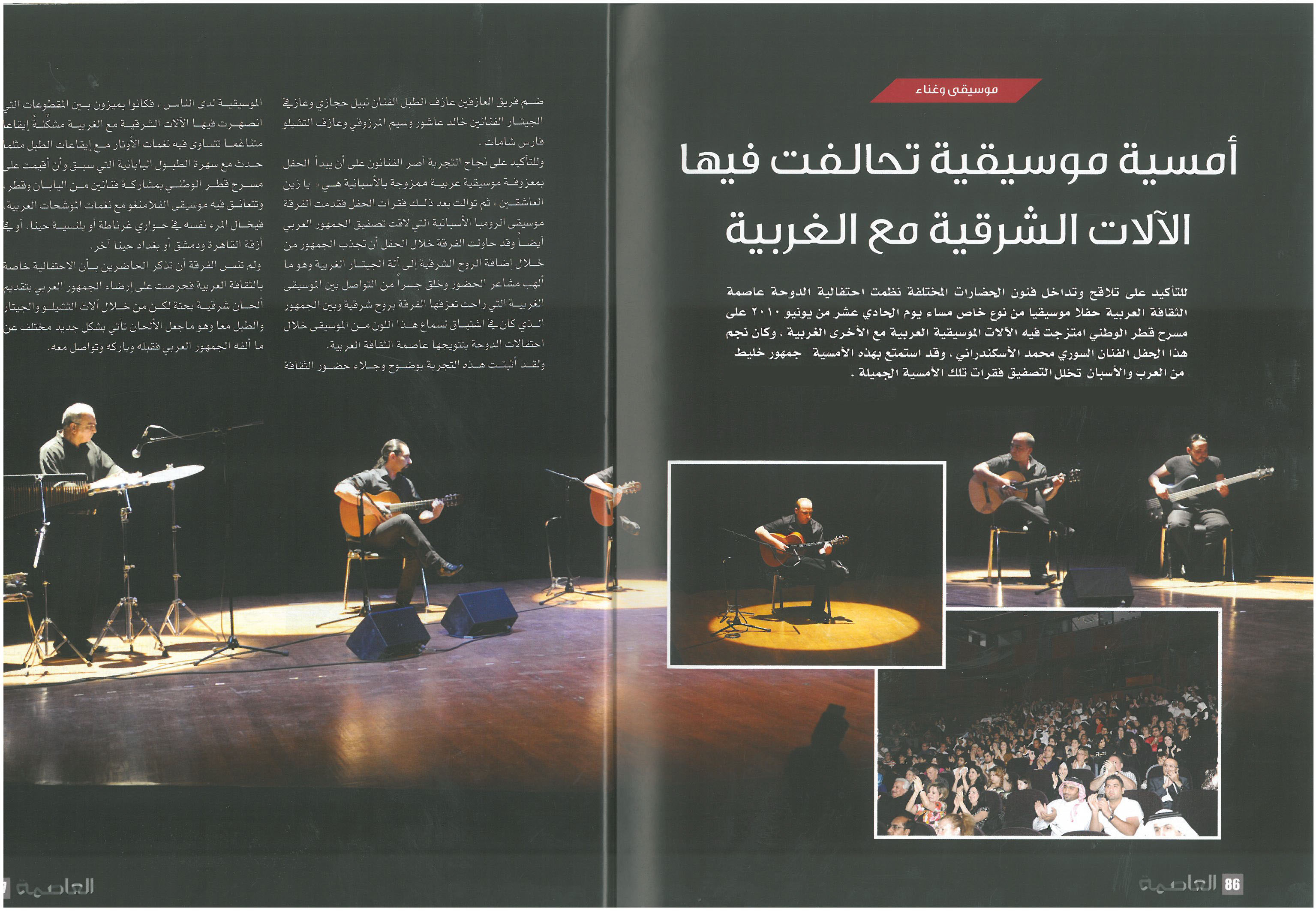 Al Asima Magazine covered a musical concert by AlexanderRani in two pages . described his special way of performing ,composing and arranging music with his ensemble.